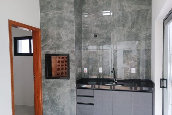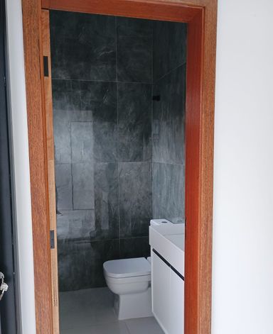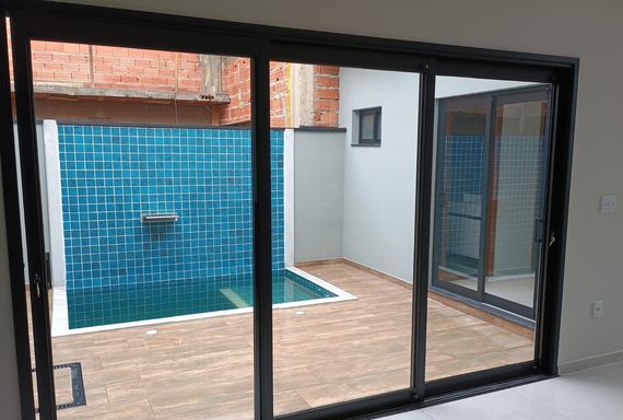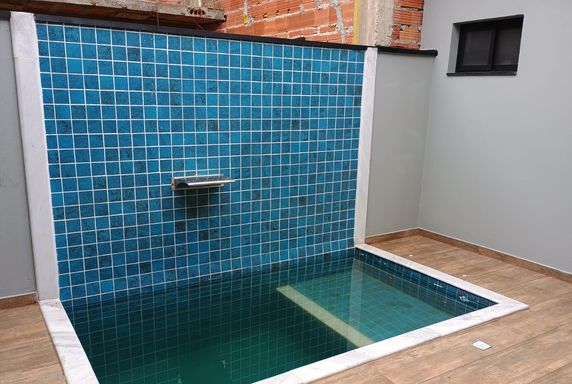 Terreno de 193 m2, casa com 126m2. Sala de jantas, cozinha com móveis planejados, área gourmet com churrasqueira, piscina com cascata, quintal.